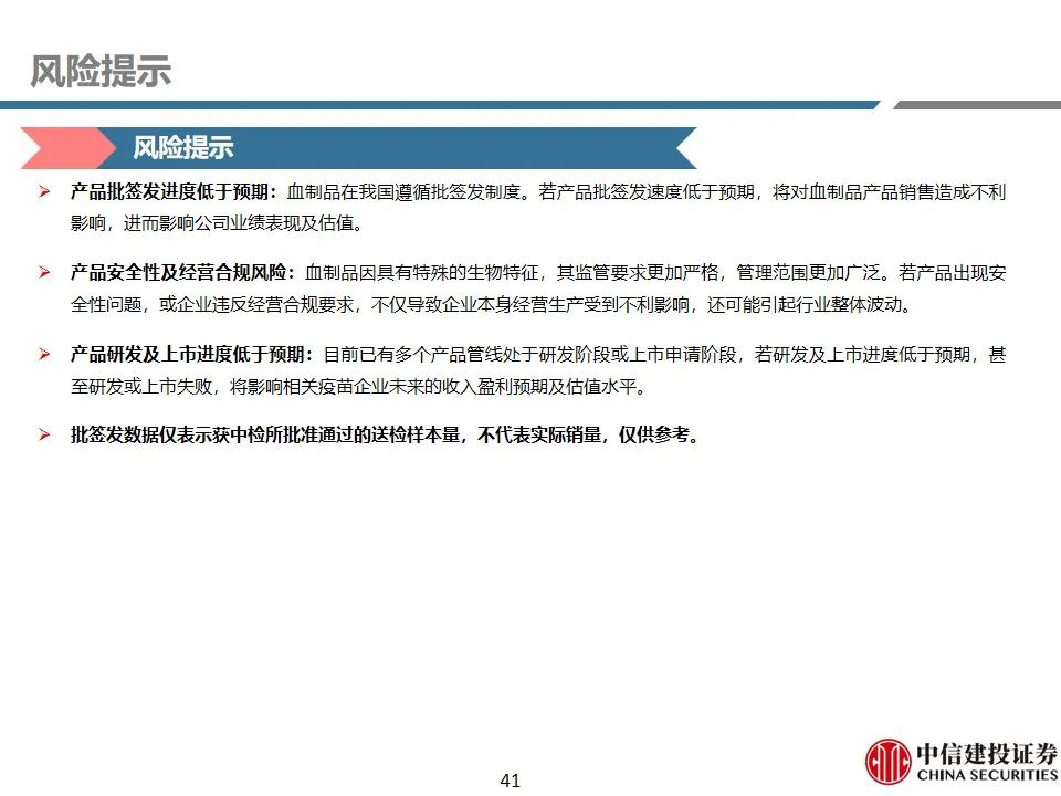 产品批签发进度低于预期:血制品在我国遵循批签发制度。若产品批签发速度低于预期,将对血制品产品销售造成不利影响,进而影响公司业绩表现及估值。